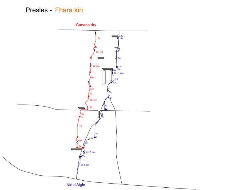 - Nid d'aigle. 6b max, 6a obligatoire. Une jolie voie abordable de cette falaise.