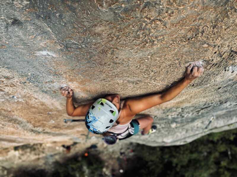 Niveau 5B en tête en falaise ou 5C en tête en salle.